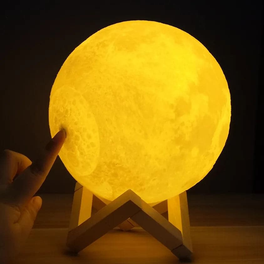 1. Touch the metal ring at the bottom of the moon lamp to turn on / off the light and change color.
